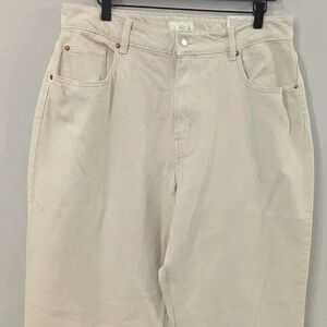 NWT H&M Cream Denim Pants Loose Wise Leg Straight High Waist size 14