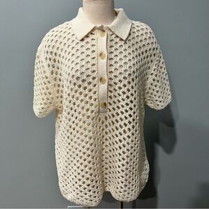 NWT H&M Cream Short Sleeve Hole-knit Top Size Medium