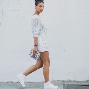 NWT H&M Cut Out Striped Romper In White And Black Size 12