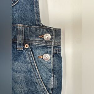 NWT H&M Divided Distressed Shorts Overalls with silver hardware and buttons. Size 4