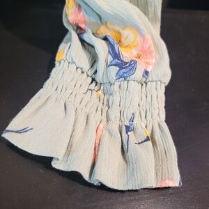 NWT H&M Divided Lt Green Floral Boho Peasant To Sz 4 Long Sleeve Ruffle V-Neck