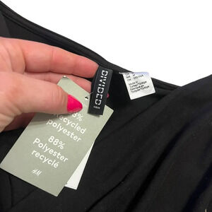 Keywords: H&M Divided, women's blouse, black blouse, wrap design, long sleeve blouse, casual wear, fall fashion, recycled polyester, elastane, machine washable, solid pattern, medium size, regular fit, women's clothing, new with tags