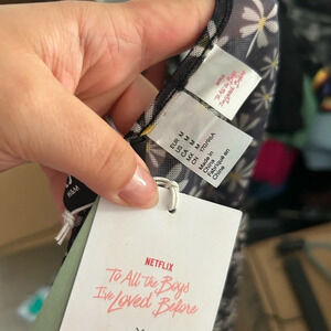 Brand new with tags. Super cute floral cropped mesh top with lettuce hem. This is an H&M collab with Netflix’s show To All The Boys I’ve Lived Before. WOMENS size medium.