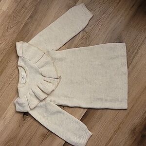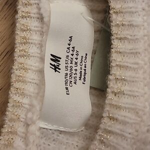 NWT H&M Flounce Trimmed Cozy Metallic Sweater Dress Ivory Gold 4-6Y/5T