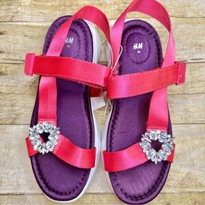 NWT H&M Fuchsia and Plum Strappy Rhinestone Charm Sandals