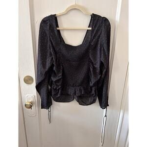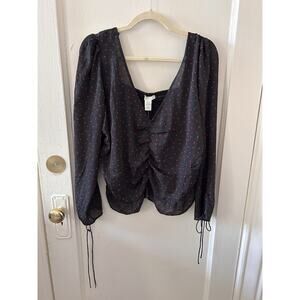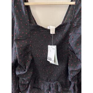 NWT H&M Heart Print Blouse Flowy Tie Sleeve | XL
