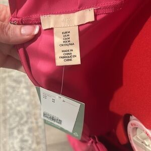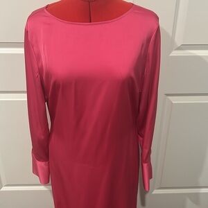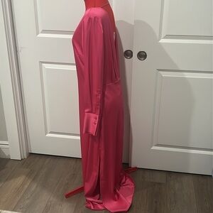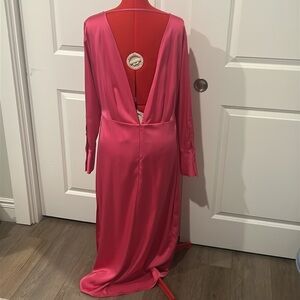 NWT H&M Hot Pink Satin Like Backless Long Sleeve Maxi Party Dress Size Medium
