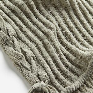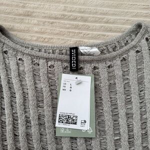 light green color, lightweight stitch look with ties up the sides. due to the crochet type stitch, it is see through so you'll likely need to wear something underneath it. never worn and in perfect condition