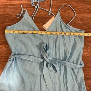 NWT H&M Lightweight Spaghetti Strap Wide Leg Romper Sash Belt Blue Size Small