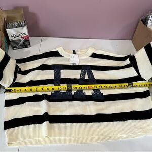 NWT H&M+ Motif-front Sweater Cream Stripe “LA”