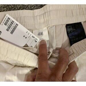 NWT H&M Natural Linen Pants Women's Beige Elastic Waist Pockets Size Medium