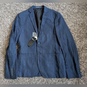 NWT H&M Navy Slim-Fit 100% Linen 2-Button Blazer Suit Jacket Men's 34R