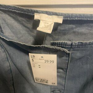 NWT H&M Off The Shoulder Blue Crop Top Chambray Denim Puff Sleeve Women's M