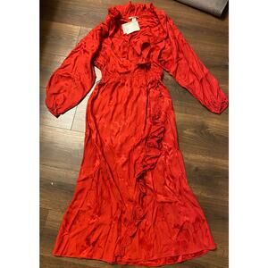 NWT H&M+ Ruffle trimmed red wrap dress sz: S