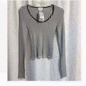 Fitted top in a soft rib knit. Scoop neck and long sleeves with slits at cuffs. New with Tags.