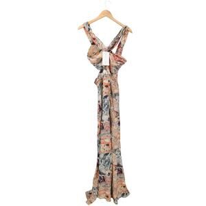 NWT H&M Studio Women's Beige Draped Patterned Maxi Side Slit Dress Size Medium