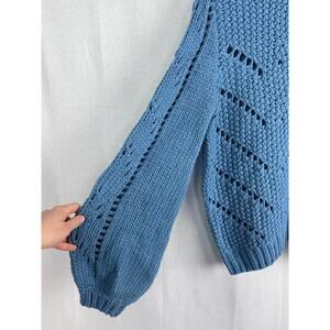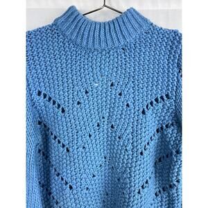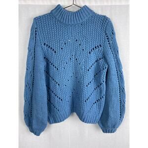 NWT H&M Sweater Chunky Pointelle Pullover Blue Winter Cozycore Slouchy Artsy
