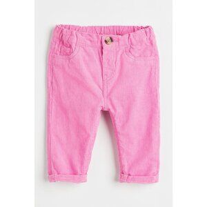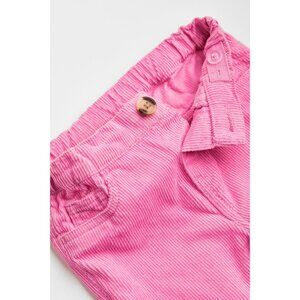 Pants in soft cotton twill. Adjustable, elasticized waistband for individual fit, mock fly with button, and two back pockets.