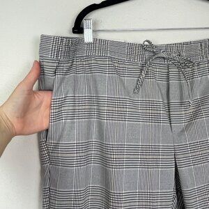 NWT H&M Women's XXL Gray Plaid Slim Fit Stretch Waist Tie Front Career Pants