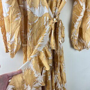 NWT H&M Yellow Palm Printed Long Sleeve Midi Maxi Wrap Dress