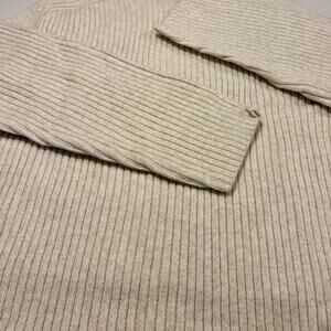 Ribbed turtleneck sweater; split at the sides, longer in the back. Will look great with anything you wear!