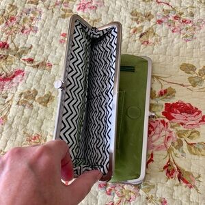 NWT HOBO “Lauren” Perforated Leather Double Frame Clutch Wallet in Kiwi.
