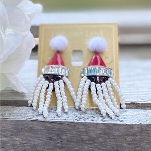 NWT HOLIDAY LANE SILVER TONE CRYSTAL, BEAD AND POM-POM SANTA EARRINGS