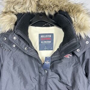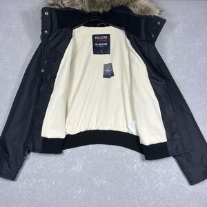 Up for sale: NWT HOLLISTER ALL WEATHER BOMBER JACKET COAT W/FAUX FUR BLACK WOMENS SIZE LARGE