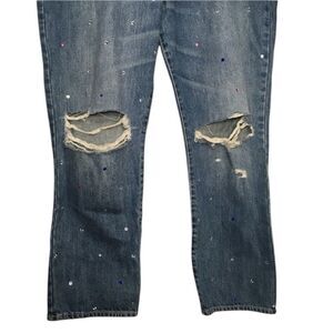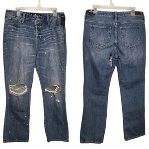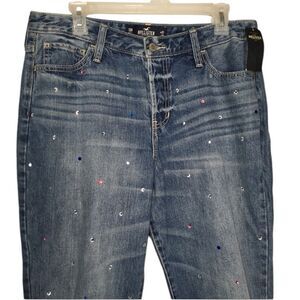 CUTE RHINESTONE DISTRESSED STRAIGHT LEG JEANS. BRAND NEW WITH TAGS BY HOLLISTER. HIGH RISE VINTAGE STRAIGHT LEG JEANS. HITS ABOVE THE ANKLE.