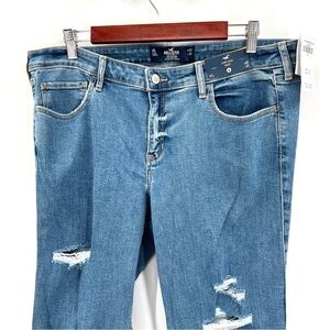 NWT HOLLISTER Woman's Blue Low-Rise Distressed Boot Jeans Size 33