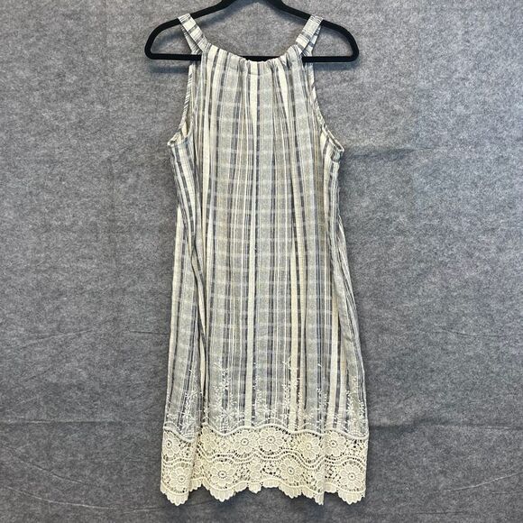 NWT HOPE AND HARLOW Shift Dress Women's Size 10 Pale Blue Cream Striped Halter