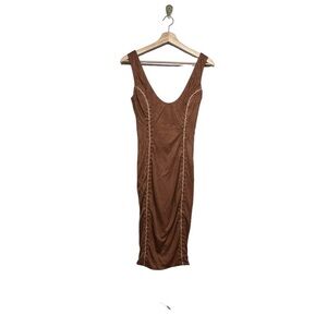 NWT HOUSE OF CB Alanis Cooper Vegan Suede Sleeveless Dress XS