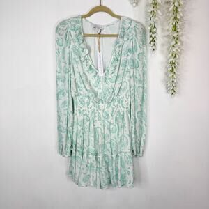 NWT HOUSE OF HARLOW 1960 Mini Dress Ruffle Smocked Waistband long sleeve 3061