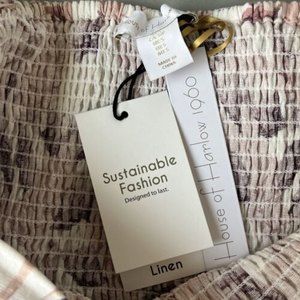 NWT HOUSE OF HARLOW 1960 SMOCKED OFF THE SHOULDER LINEN FLORAL MIDI DRESS