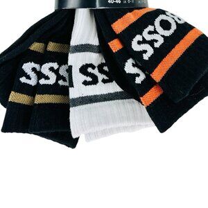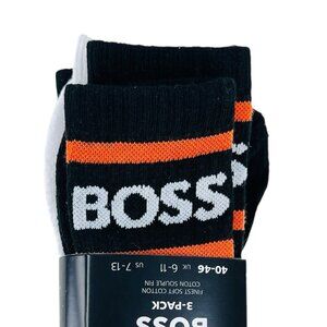HUGO BOSS Men's 3-pack Cotton Crew Socks Made in Italy Black White Size 7-13