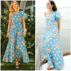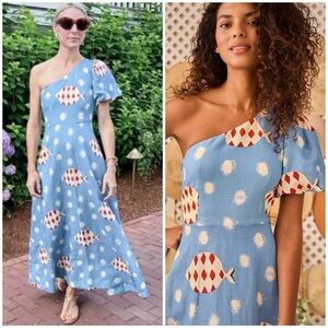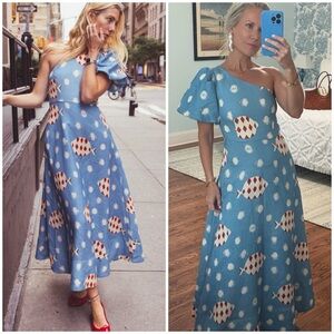NWT HUNTER BELL CARMEN One-shoulder Fish Printed Midi Dress SZ US 6