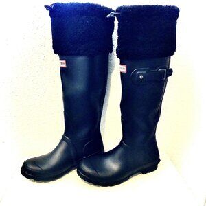 NWT HUNTER Orig Tall Wellie Winter Rain Boot Sheep Shearling Cuff 6 MSRP $295