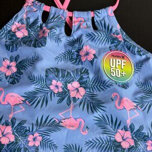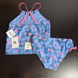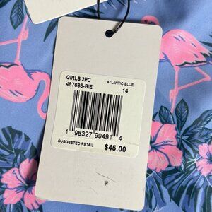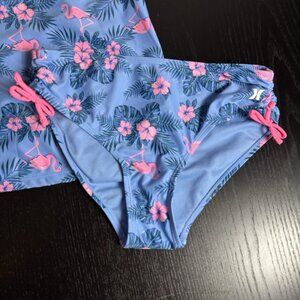 NWT HURLEY Girls Kids Size 14 Blue/Pink Flamingo Print Tankini Swimsuit Set