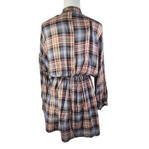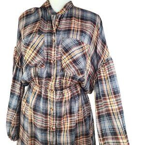 NWT HYFVE Brown Black Tartan Plaid Flannel Long Sleeve Shirt Babydoll Dress