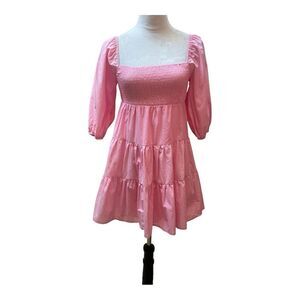 NWT HYFVE Pastel Pink Babydoll Short 3/4 Length Sleeve Cottagecore Mini Dress S