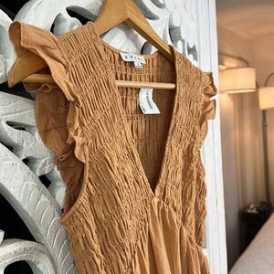 NWT HYFVE RARE FLAIR SMOCKED V-NECK TIERED MINI DRESS gold size S