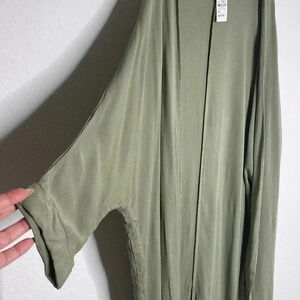 This is a beautiful, new with tags kimono in the color sage. It has 3/4 sleeves