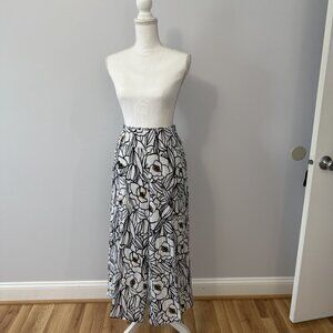Habitat Clothing three piece timeless outfit: black and white printed pants and blouse, and additional yellow blouse. Perfect to mix and match with other neutrals and perfect for travel since they will not wrinkle, and can be dressed up or down. The pant set has a classic floral design and the second blouse is the only yellow color that matches all skin colors. Pants are palazzo style and the tops have 3/4 length sleeves.