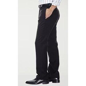 NWT Haggar E-CLO Men's Classic Fit Dress Flat Front Pant Exp Waist Black 34Wx32L