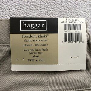 NWT Haggar Mens Freedom Khaki Pants Size 38x29 Pleated Classic Fit Wrinkle-Free