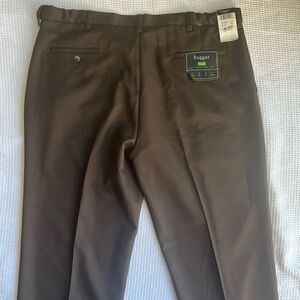 NWT Haggar Men's Plain Front No Iron Stretch Brown Pants sz 40W x 32L