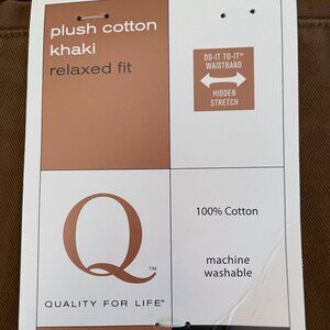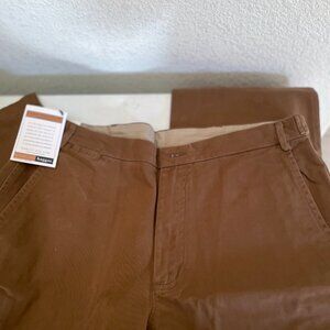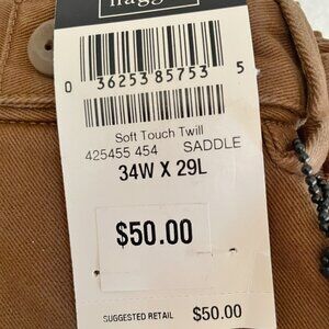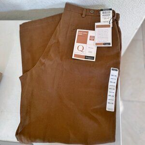 NWT Haggar Plush Cotton Relaxed Fit Mens 34W X 29L Brown Pants Plain Front