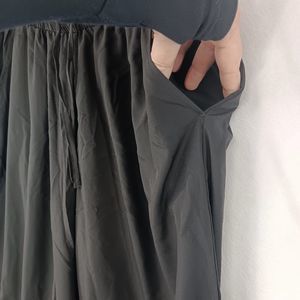 Elevate your casual wardrobe with these trendy NWT Halara Breezeful jogger pants in size S. The black solid pattern and wide-leg design give a fashionable touch while the elastic drawstring waist and lightweight fabric provide comfort and convenience. Ideal for traveling or casual occasions, these pants feature split hems with tie closure and pockets for added accents. The high-rise fit and flat front complete the look, making it a perfect addition to your wardrobe.