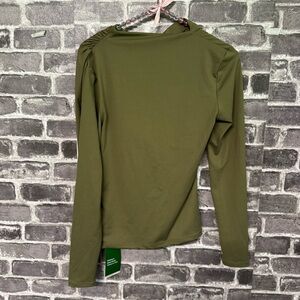 NWT Halara Cowl Neck Ruched Long Sleeve Slim Work Top shirt capulet olive green