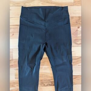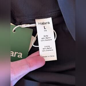 Women's halara SoCinched High Waisted Butt Lifting Tummy Control Side Pocket Shaping Training UltraSculpt Leggings. In 7/8 length, in black, in size large and new with tags!